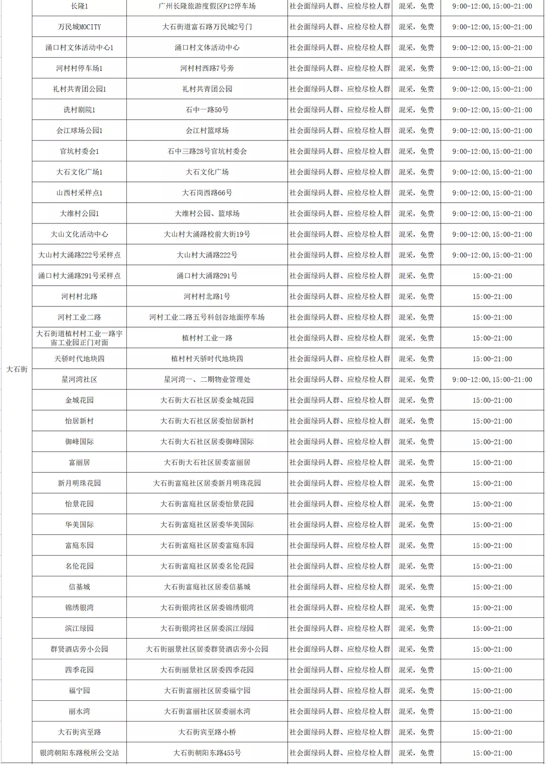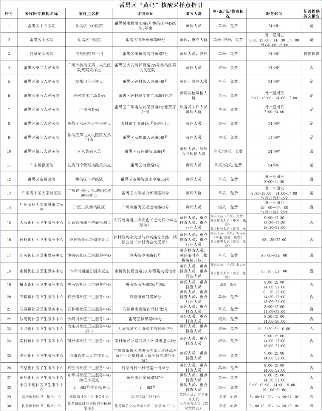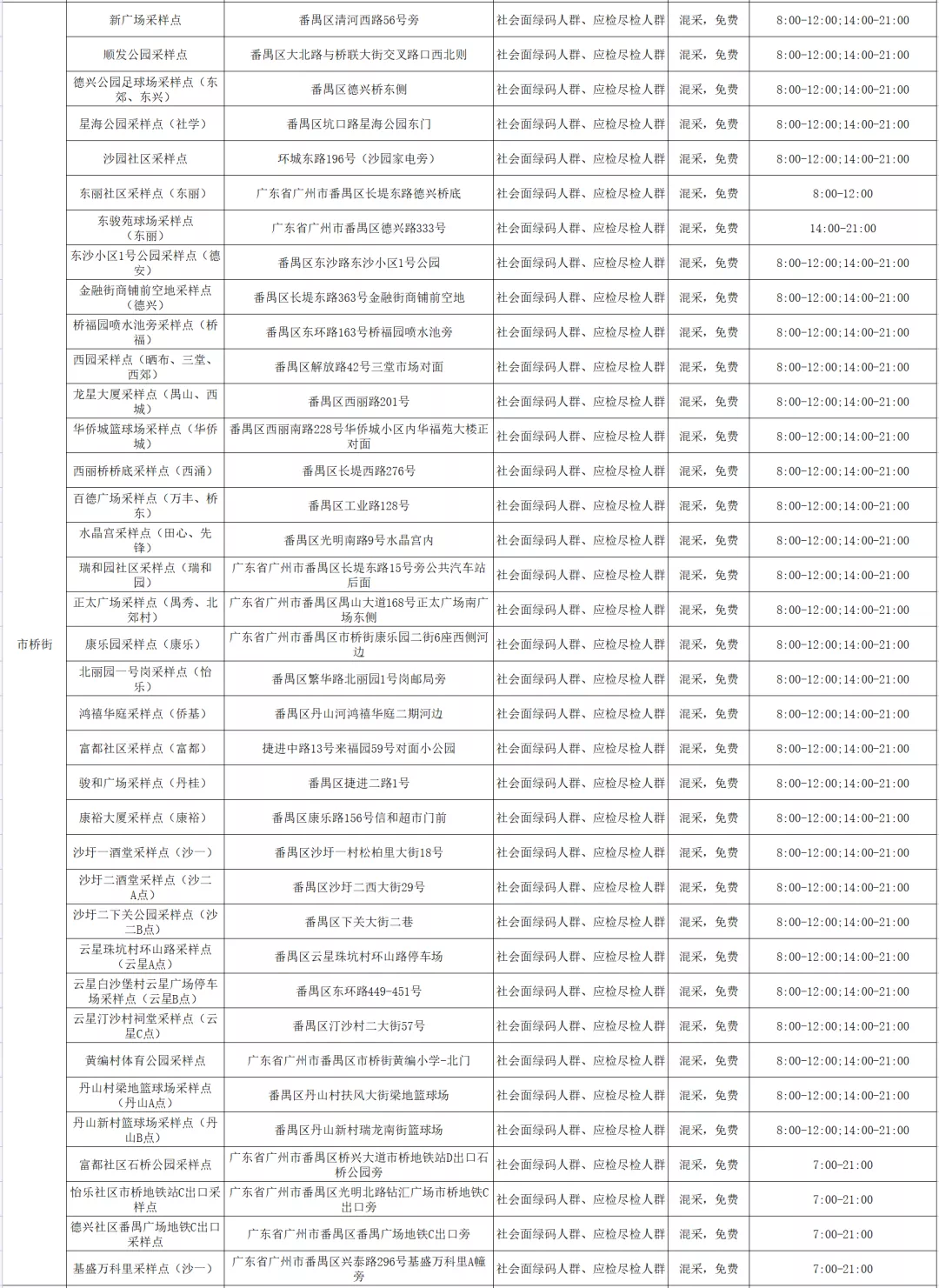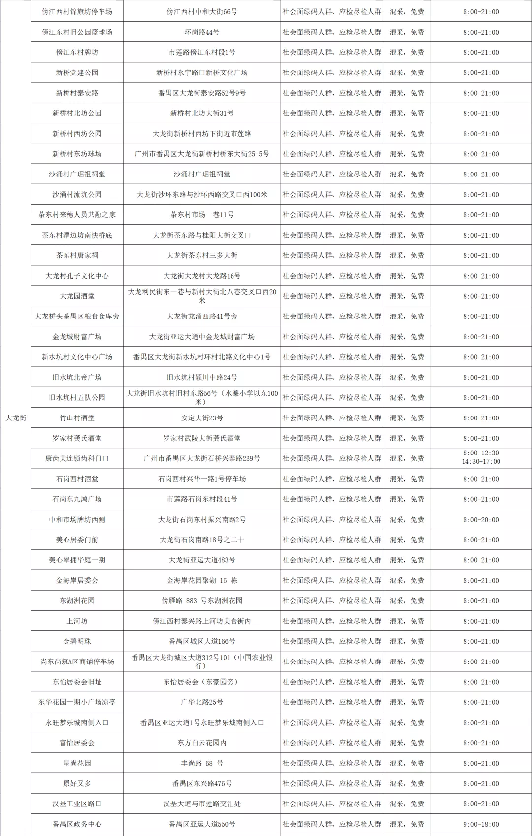 番禺区11月11日愿检尽检(自费)核酸采样点指引