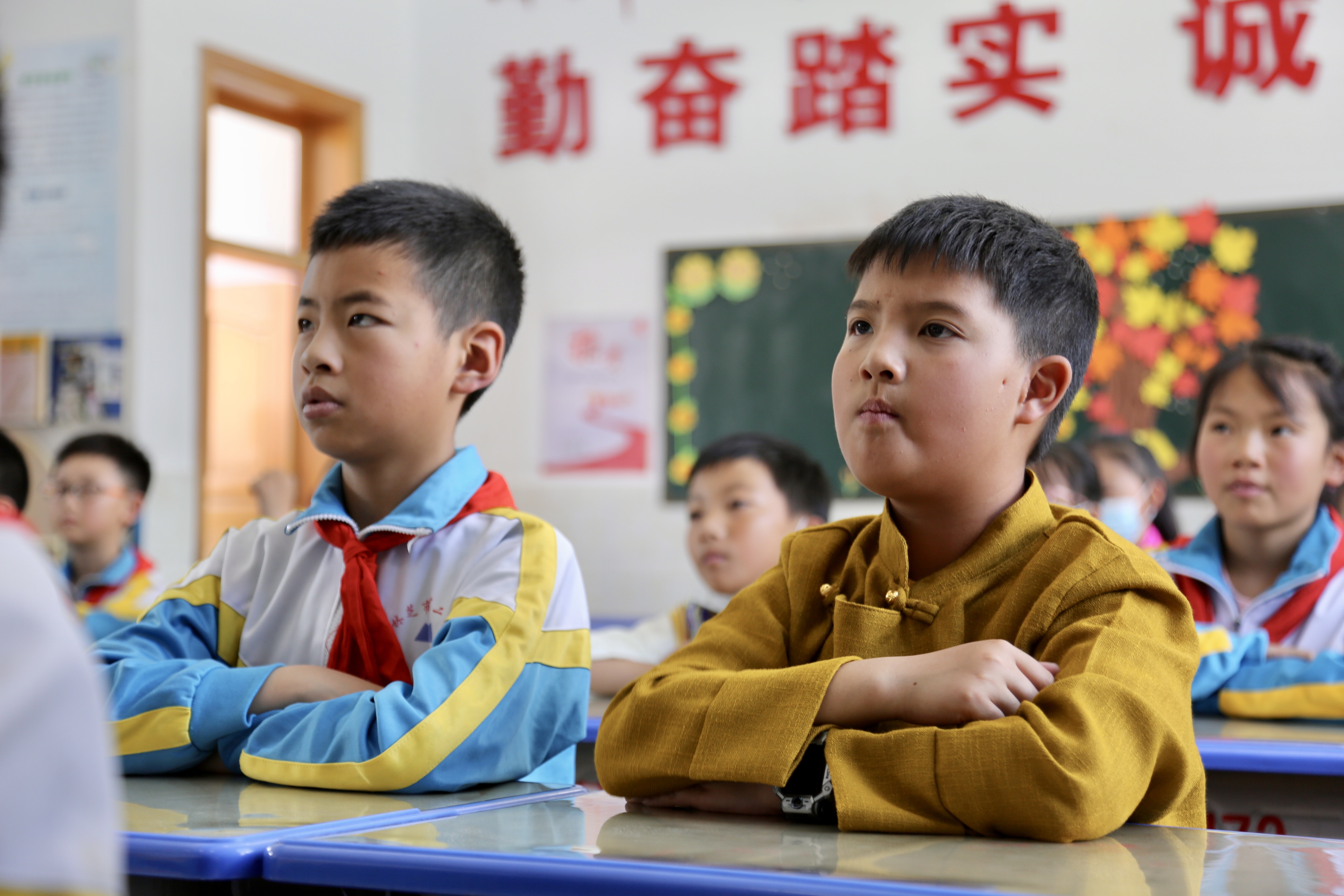 林芝市第二小学,服务队成员们与师生们共同分享粤藏非遗文化故事。他们精选播放了广东醒狮、端午龙舟等一系列短视频,金玲还给同学们讲述了什么是“非遗推荐官”以及推荐官在非遗文化传播中扮演的重要作用。一个个看得见、摸得着的鲜活案例,让同学们看得津津有味,也充分感受到非遗文化的旺盛生命力。在互动环节,同学们积极为家乡代言,争当西藏林芝的“宣传推广小使者”。每个人神采奕奕地站在讲台上,有的介绍工布响箭,有的介绍藏香、酥油茶。“宣传推广小使者”们都获得了由广州黄埔区龙狮协会赠送的广东醒狮文创产品——中国结醒狮钥匙扣。
