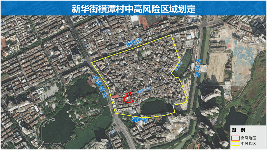新华街新华路以南,湖畔路以北,花城南路以东,横潭公园、金里巷以西区域(高风险区除外),落实“人不出区、错峰取物”管控措施。