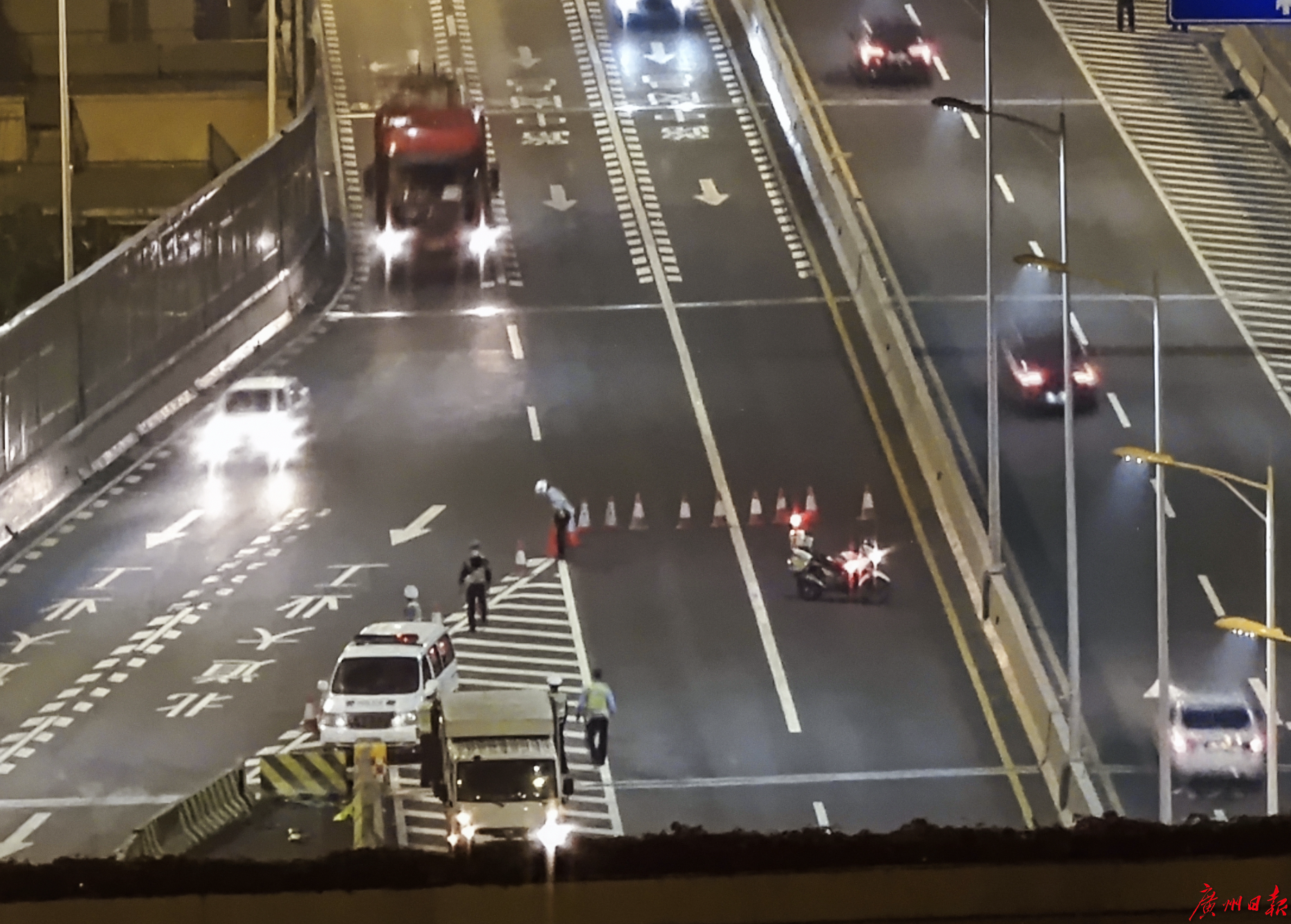 11月11日零时,鹤洞大桥往海珠区方向开始实施交通管制。