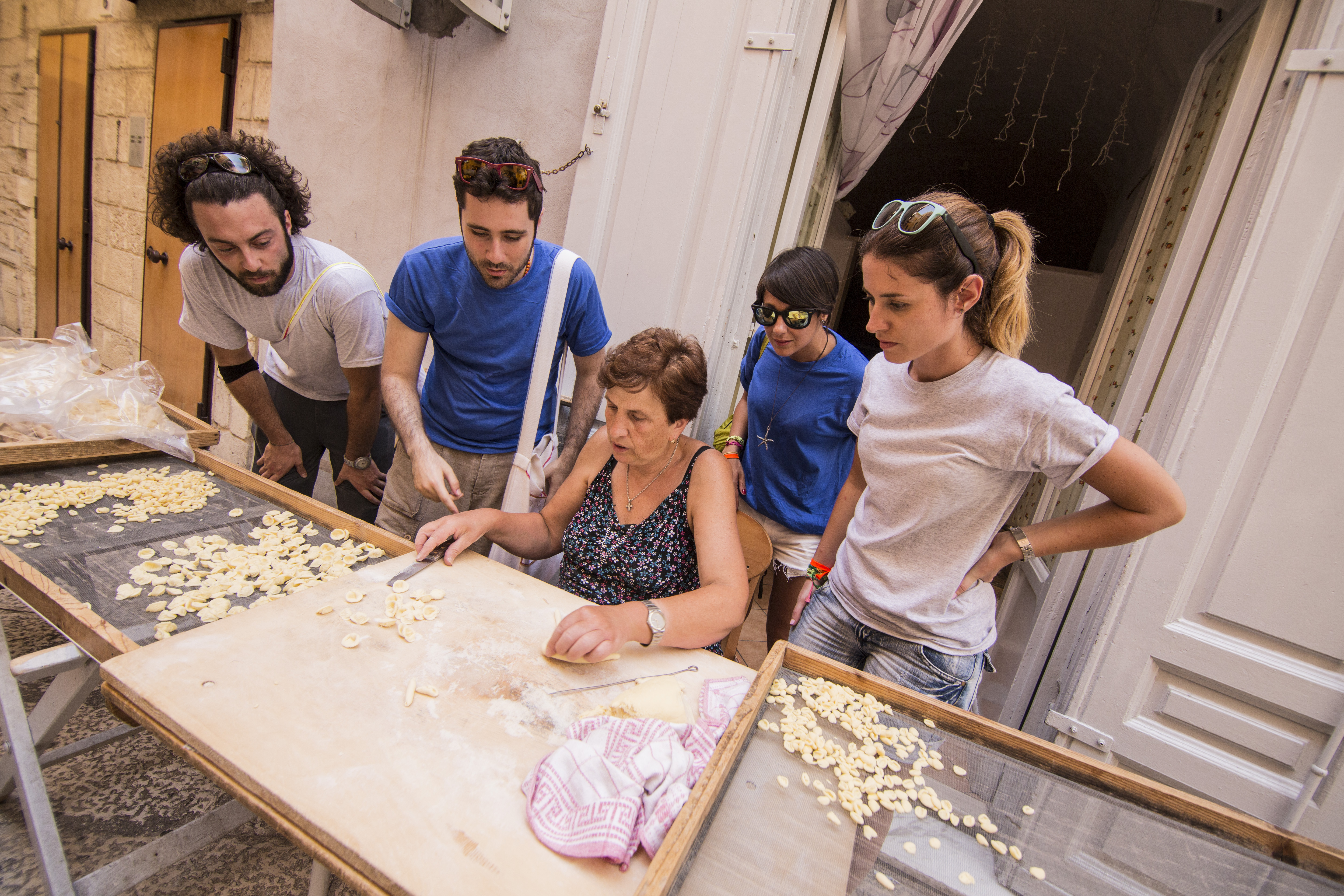 努齐娅Nunzia女士在她一楼的小厨房里,她的厨房门总是对游客敞开着,几十年前她就发明了这种独特的“showcooking”,尽管这个词近些年才开始流行全球。她和她的母亲不知疲倦地工作着,手上总是沾着白白的面粉。偶尔孙女们也会在她们身旁,“她们也要学习,这一点很重要!”努齐娅女士说。事实上,无人会预料到这条“猫耳面”小巷会如此世界闻名:来自世界各地的电视台光临这里,人们在这里品尝和学习手工制作意面,这正是周日里不可或缺的一种家庭仪式。如今,实地观摩和学习如何“手工制作”意大利面,也是当今体验式旅游的一部分。