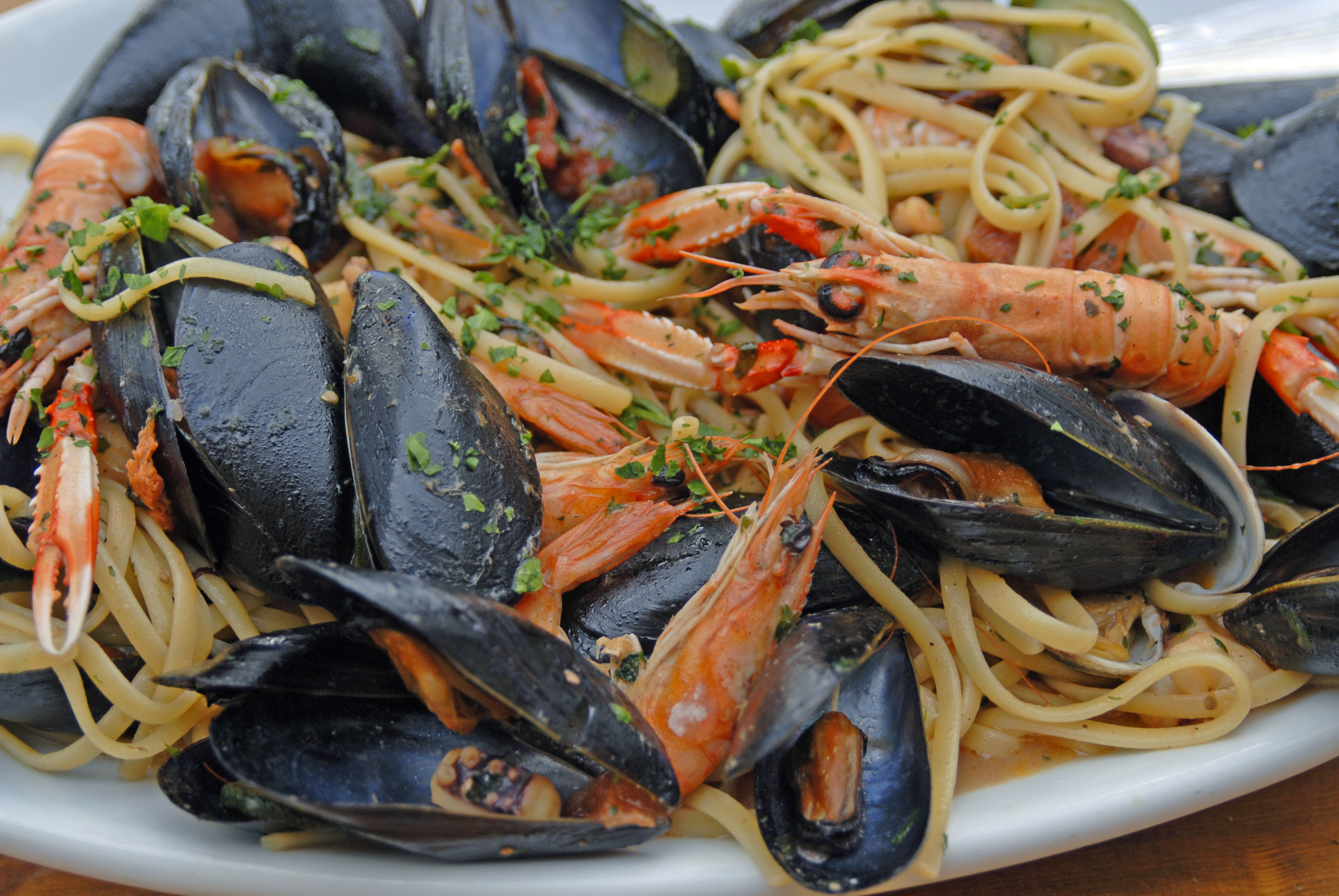 最后是海鲜。普利亚人对海鲜美食更是趋之若狂。塔兰托青蛤贝和巴里青蛤贝是无可争议的美味,大海的气息刺激着人们的味蕾,海贝是普利亚人和所有喜爱它的人的感官盛宴。伟大的西西里摄影师斐迪南·沙纳 (Ferdinando Scianna)曾长期在意大利南方旅行和艺术创作,当被问及他本人的个性时,他回答说他有着青蛤贝一般的特性—— “因为当我遇到一块好礁石时,我会附着上去”。这些海贝甚至打破了传统美食的天花板:它们始终是主角,从不是配角。无论是煮青蛤贝impepata(一地中海香料调味),还是著名的Tiella扇贝饭(用米饭、土豆和扇贝焖煮而成),以及各种美味的意大利面和海鲜饭,再配上一瓶普利亚本地的白葡萄酒,那真是再完美不过了!