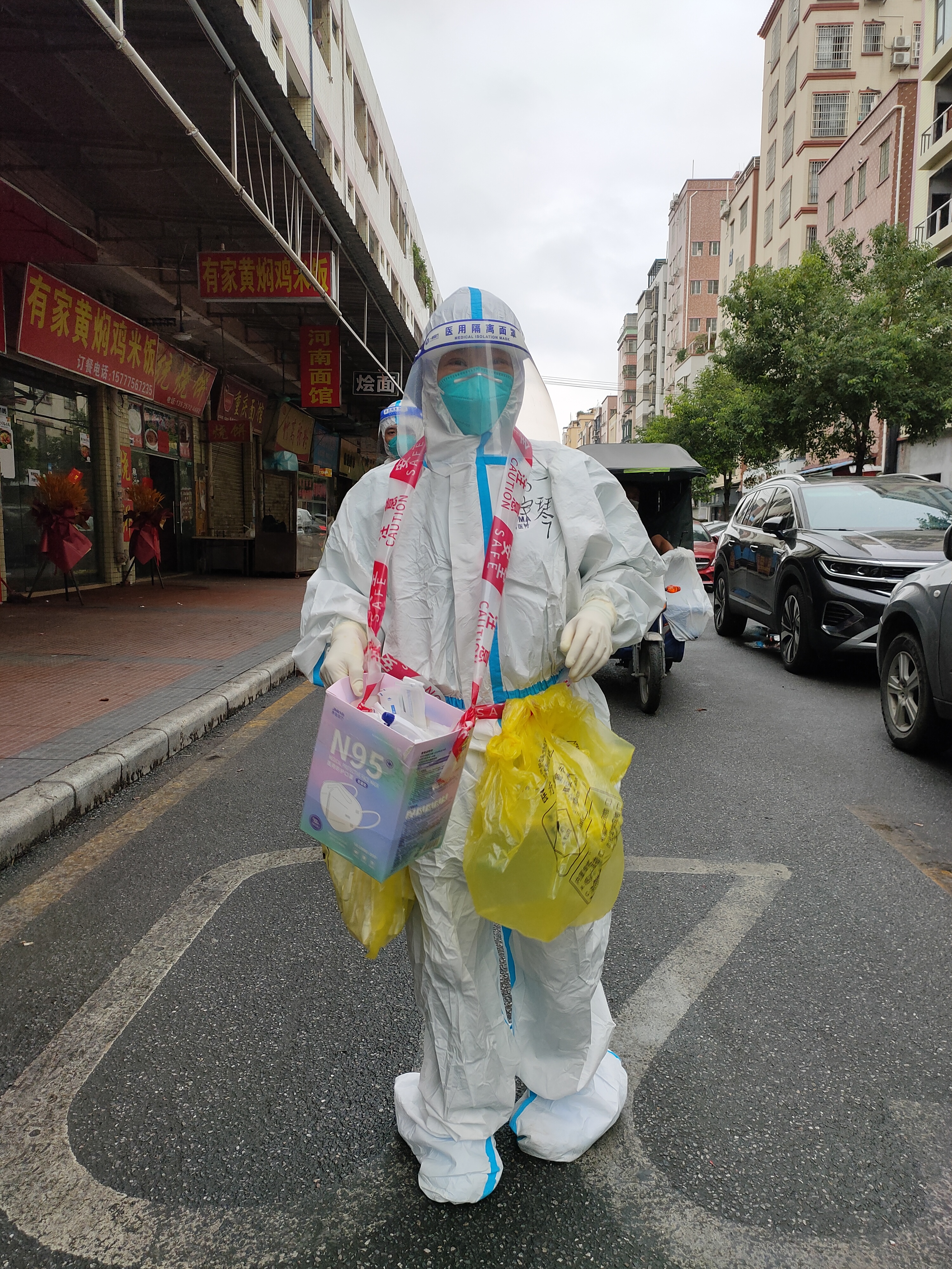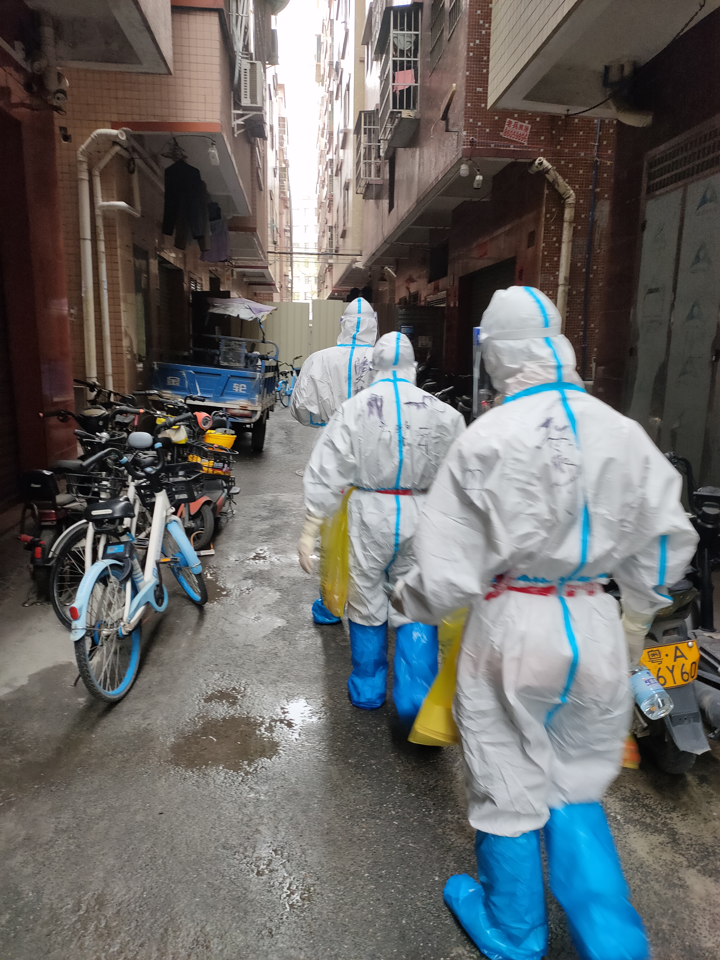 王宇琴熟练地采样,并提醒居民戴好口罩。挨家挨户找,一家一户做,3个多小时,王宇琴的衣服早已湿透,走出密集的巷道在小马路边歇歇气,又立马进入网格巷道爬楼,继续工作……当晚,她和队友们找到并完成37户居民的核酸采集工作,爬楼16栋,最高7楼,完成任务回到酒店已是深夜1时。