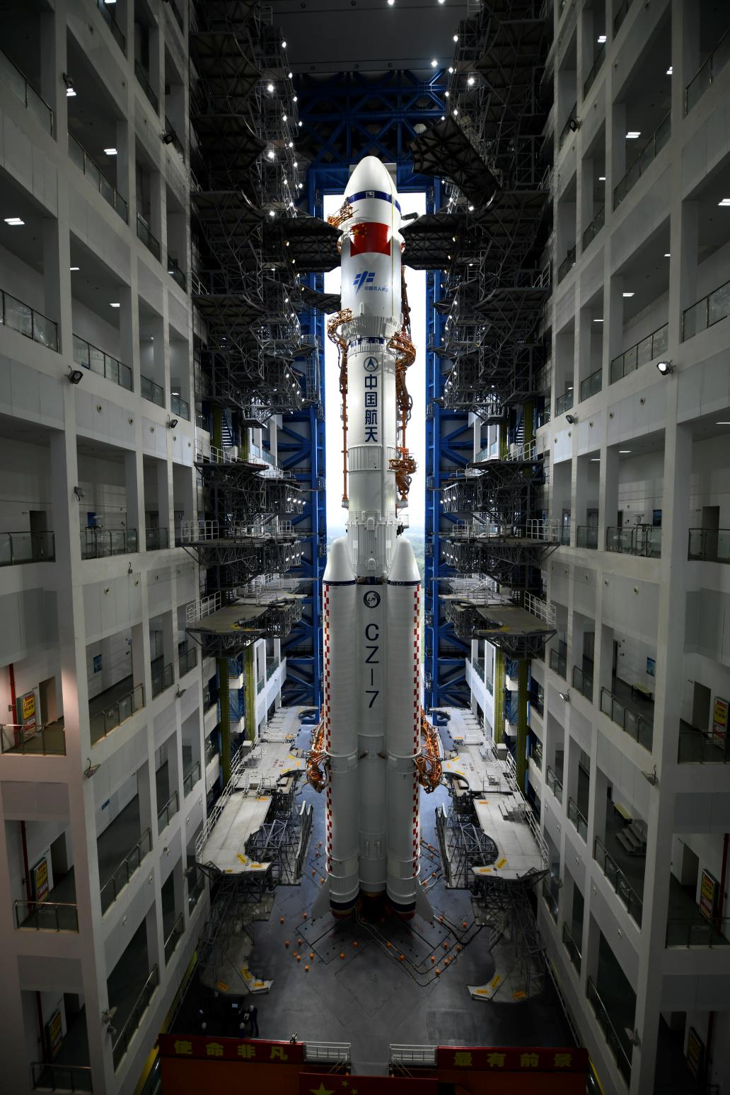 为了让天舟五号转运更安全,早在赴发射场前,研制人员通过充分调研,在继承以往航天器船衣设计经验的基础上,设计了主体结构由里层、中芯和外层组成的新型柔性船衣,有里有面,简约而不简单,这种船衣不仅可以阻隔高温湿度高盐雾环境对飞船的影响,还能防雨、防尘、防雷电、防污染。