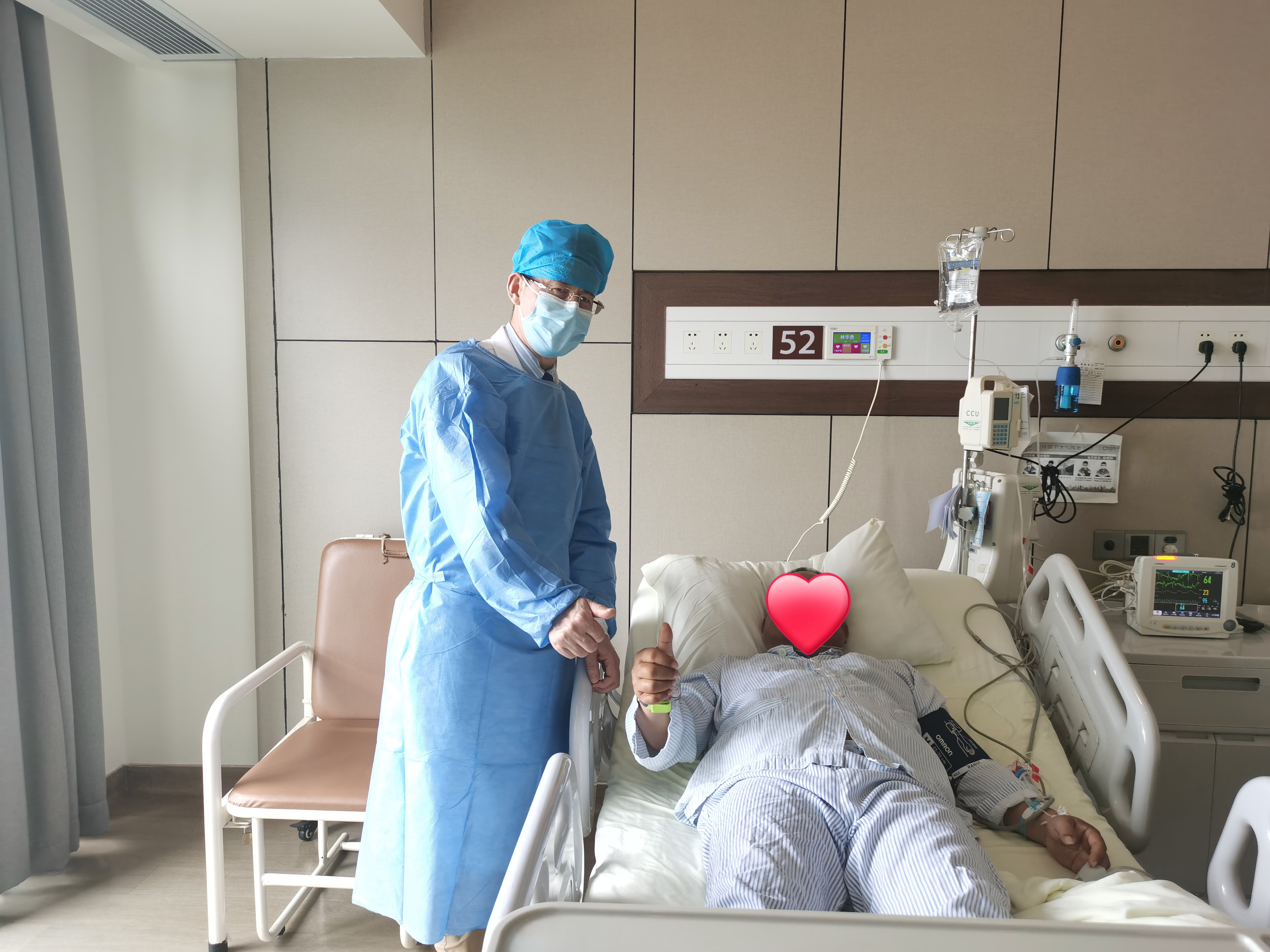 术后林叔症状明显好转,顺利脱险,目前在心内科隔离病房康复治疗中。