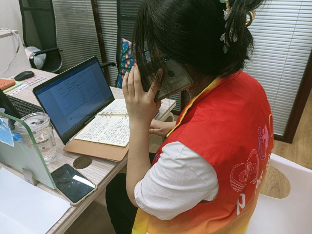 (项目社工电访关爱服务对象,用心倾听需求)