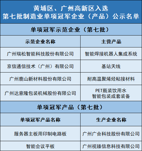 广东省工业和信息化厅日前发布的公示名单显示,在第七批制造业单项冠军企业(产品)中,广东(不含深圳)获评单项冠军示范企业9家、单项冠军产品18项。