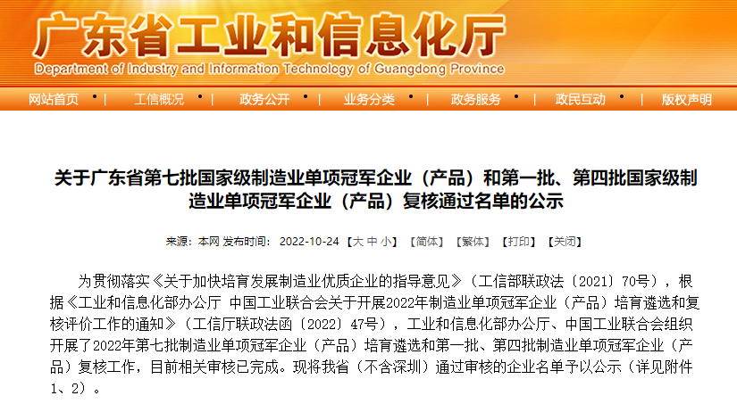 近日,工业和信息化部、中国工业经济联合会组织开展了第七批制造业单项冠军企业(产品)培育遴选和第一批、第四批制造业单项冠军企业(产品)复核工作,并已完成相关审核。