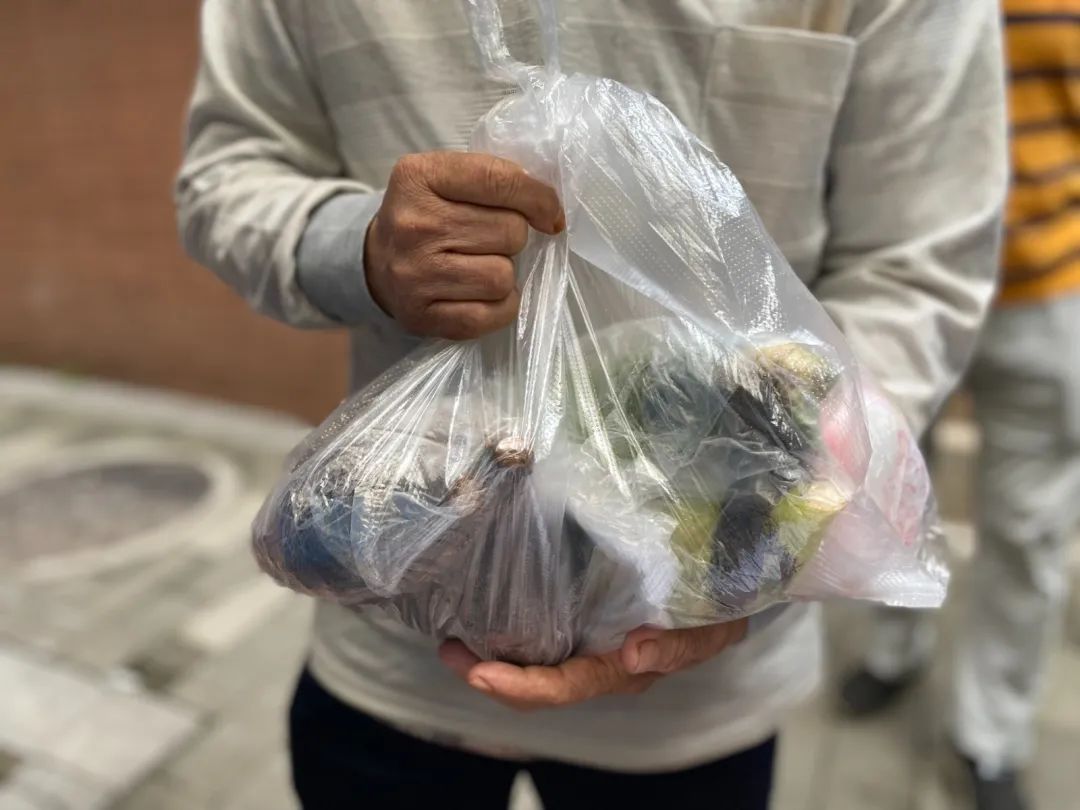 现场,社工有条不紊地整理蔬菜包,还有热心居民华姐主动加入送菜队伍。热心居民华姐也主动加入送菜队伍,与社工分工合作,共同将蔬菜包送给居民。