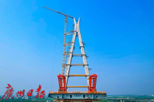 主塔采用钻石型结构,均呈八角形截面,塔冠整体外形宛如一朵明艳动人的木棉花。桥塔构思源于木棉花和水滴,即湾区之“水”与广州之“花”,其形如木棉花开,轻巧活泼、挺拔秀美,与桥址环境呼应,寓有润泽湾区之意。