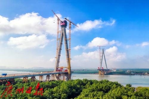 2022年11月9日,南中高速洪奇门特大桥东主塔成功封顶。至此,洪奇门特大桥东、西两岸主塔全部封顶,状如两朵“木棉”盛放,也标志着洪奇门特大桥正式进入主桥上部结构施工新阶段。
