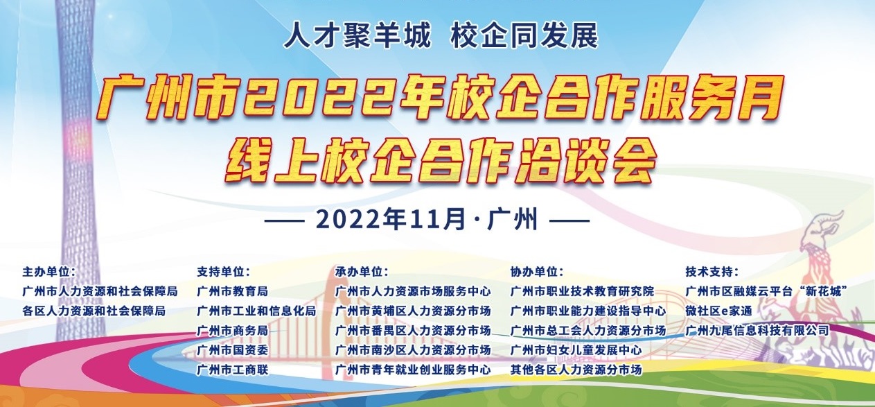 日前,由广州市人力资源和社会保障局、各区人力资源和社会保障局主办,广州市人力资源市场服务中心及各人力资源分市场承办的“广州市2022年校企合作服务月”系列活动正热烈举办中。活动旨在强化技能人才供需对接,优化就业服务,持续助力高校毕业生及各类技能人才更加充分更高质量就业。