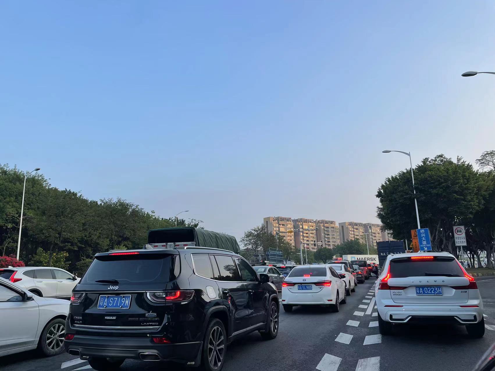 早上8:20,正值上班交通早高峰。番禺大道塘西路段,交通流量增大,车轮滚滚,城市交通恢复繁忙。