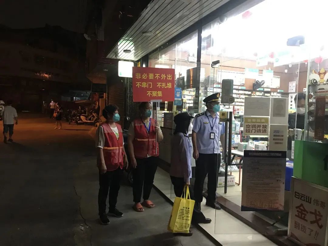 原先巡逻队主要是本村志愿者组成,后来区市场监管局派人前来协助,还有市生态环境局番禺分局和区交通运输局“尖刀班”约30人协助开展大规模核酸检测。