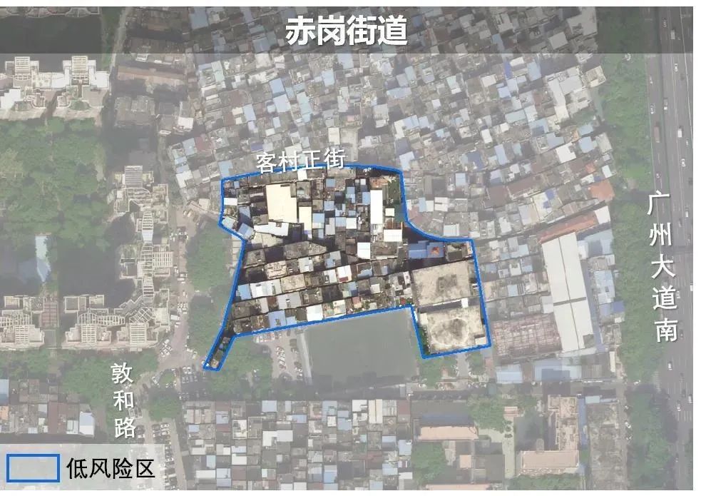 根据疫情处置进展,按照国务院应对新型冠状病毒肺炎疫情联防联控机制综合组《新型冠状病毒肺炎防控方案(第九版)》工作要求,海珠区自2022年11月19日10时起,决定将赤岗街道客村大街十六巷至十八巷,十四巷2号、4号,客村大街39-57号(单门牌),西南约一巷至西南约七巷,南约大街13-21号(单门牌)由高风险区调整为低风险区,实行“个人防护、避免聚集”防控措施。