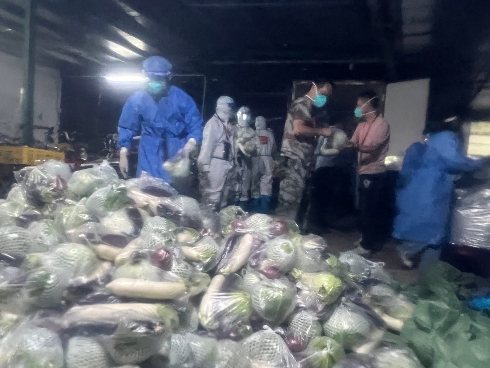 志愿者们搬运物资,协助进行物资发放。