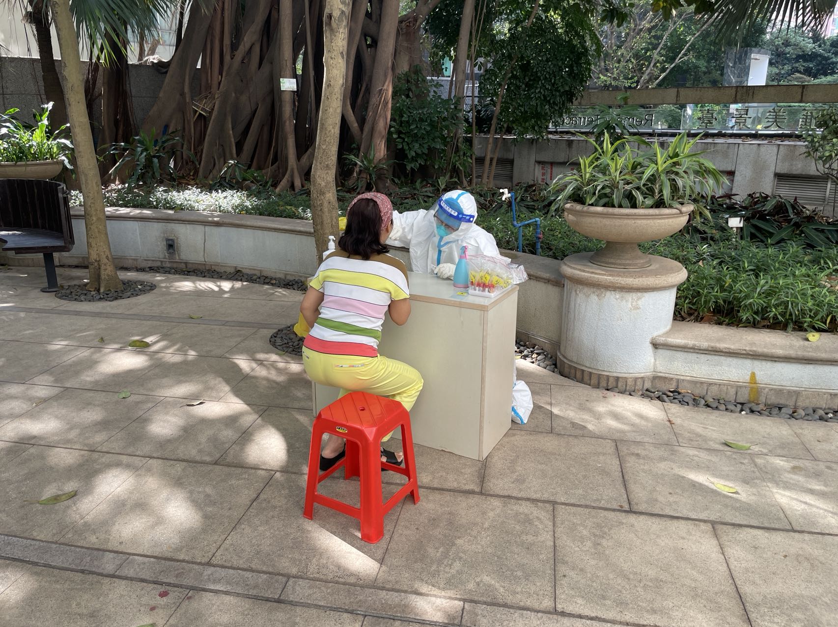 海珠区连续多天发布核酸检测“应检尽检”通告,从11月18日开始,持有核酸采集培训考核合格证明的小区业主、广东省社会福利服务中心林柏龄医生就地上岗,为小区居民争取到在小区内就能进行核酸检测,减少了聚集感染的风险,同时也减轻了其他采样点医护人员的工作量。