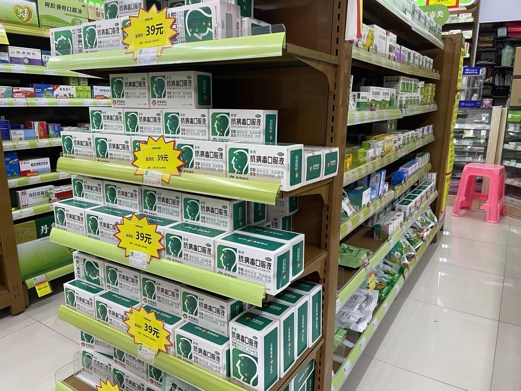 21日上午,在白云区某连锁药店内,店员告诉记者,目前连花清瘟依然断货,所以门店已将几天前摆在店门外的“连花清瘟已到货”招牌撤走。“可以考虑买些抗病毒口服液,很多都是广州产的,货量比较足。”她推荐称。记者留意到,在药店入门左手边最显眼处,货架上摆放着不少抗病毒口服液产品、小儿肺热咳喘颗粒;此外,近期销售量比较好的小柴胡颗粒、夏桑菊颗粒也都有货。