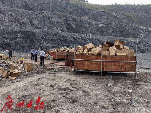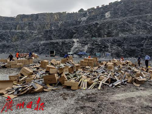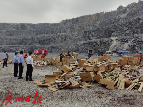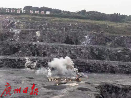 2022年11月17日,广州市公安局会同应急管理局在花都区越堡水泥采石场组织非法烟花爆竹集中销毁。