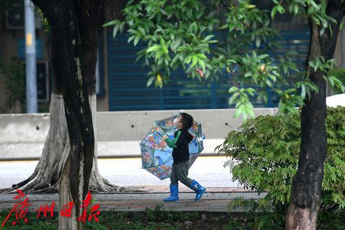 广州的今晨,市民撑伞出行。