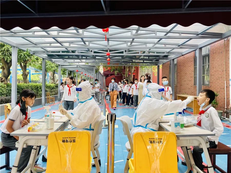 当天上午,正声小学学生实行错时错峰分区域进出校园,早校车生按原线路、时间在站点等候,学生出示24小时内核酸阴性证明,佩戴口罩乘车,下车后,在老师指引下出示健康登记卡、测量体温后,有序进入教学楼。上午8点20分,铃声响起,孩子们在班主任的带动下,投入了学习之中。