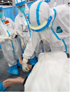 在广东省中医院医疗队接管的琶洲方舱医院19号舱,由于医疗条件有限,中医人结合以往支援武汉等多地抗疫的临床实践经验,在病区里建立了小型抢救室,配备气管插管、除颤仪等抢救设备,同时,针对患者实际情况,运用中医特色疗法为患者保驾护航。近日,医疗队使用针灸等中医疗法接连救治了发生紧急症状的患者。