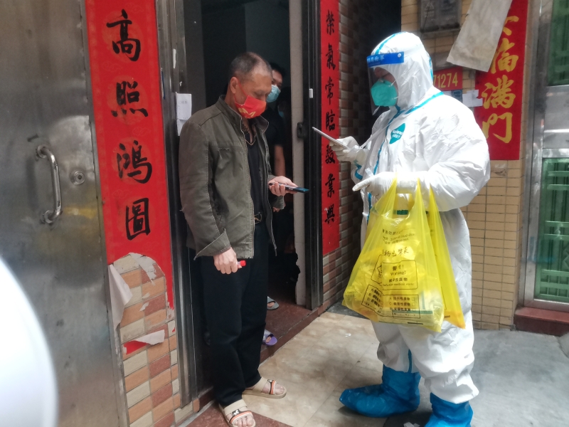 高结玲是一家农家乐的负责人,20日以来,在协会的发动下,她每天在白云区白沙村协助医务人员上门为密接隔离人员开展核酸采集工作。