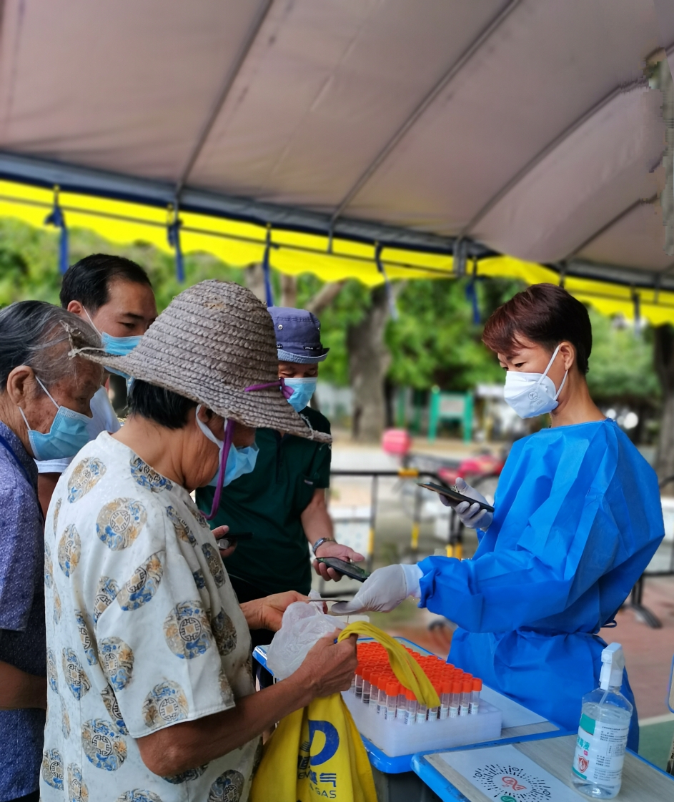 作为广州市手拉手志愿服务促进会均禾街志愿服务分队的队长,黄宝陵一直在协会的统筹下开展疫情防控志愿服务工作。11月22日,她在白云区平沙村招募了12名志愿者,协助医务人员开展核酸检测服务。