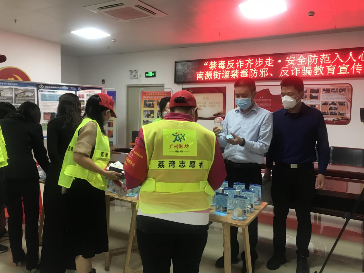 近日,广州市荔湾区南源街道开展“禁毒反诈齐步走·安全防范入人心”宣传活动,共同营造文明、平安、和谐的社区环境。 南源街道党工委、南源派出所、南源街道司法所、综治办、社区居委、北斗星社工机构及社区群众参加活动。