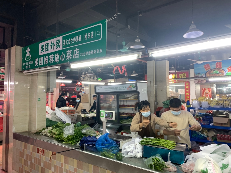 “下午去了趟家附近的市场,还是有菜的”,11月25日,苏小姐来到位于荔湾区石围塘街道兴东路的桥东市场发现,市场内的外卖菜店商户正在忙着拣货,“打印出来的订单长得像条围巾”。