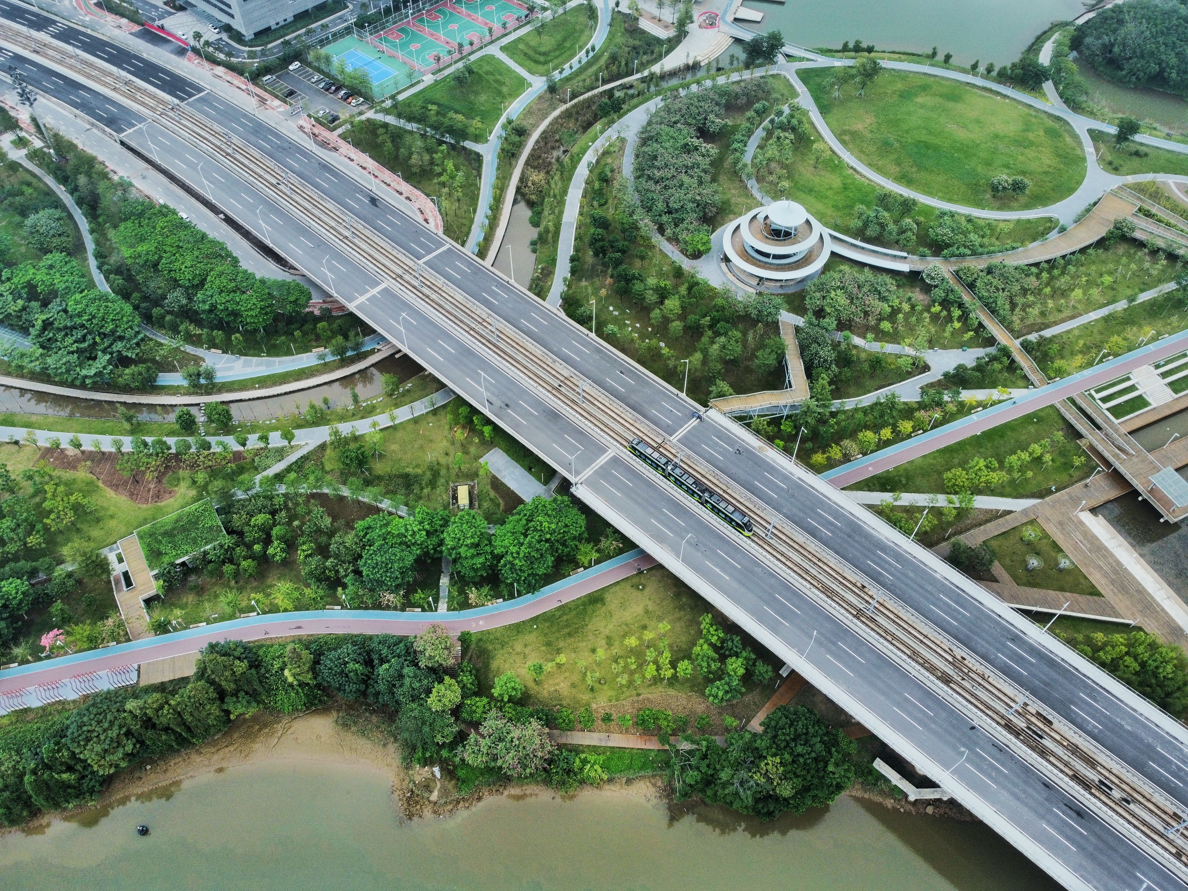 南海有轨电车1号线后通段的站点设计与首通段一致。多个站点不仅能方便市民乘坐有轨电车,还能发挥其过街天桥的功能。走在桥上,还能近距离观赏有轨电车的运行,它与沿线融合成一道靓丽风景线。这条与两条广佛地铁高效衔接的南海有轨电车线路,为广佛市民出行带来了新的出行选择。