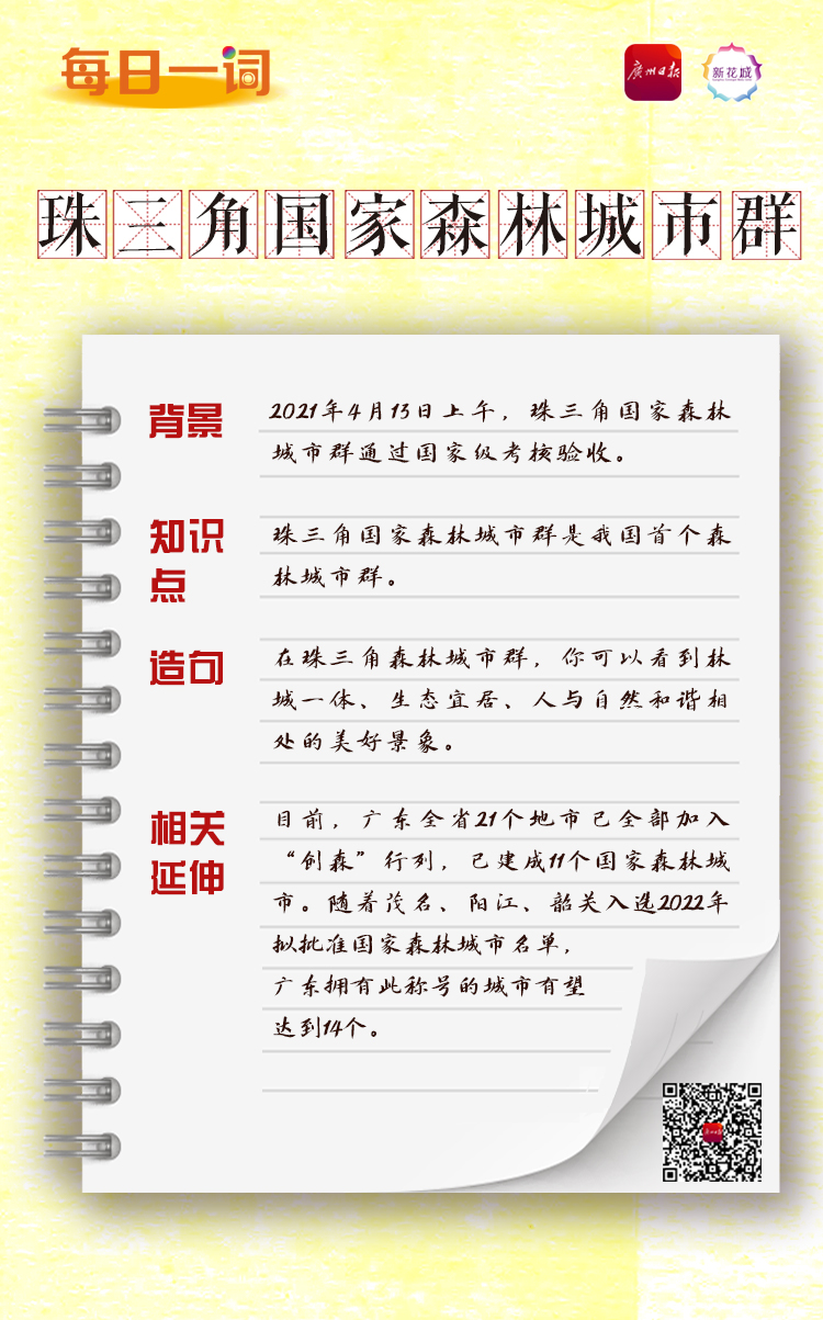 珠三角国家森林城市群是我国首个森林城市群。2021年4月13日上午,珠三角国家森林城市群通过国家级考核验收。