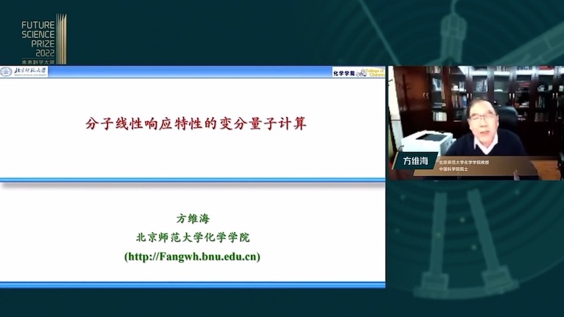 报告会上,中国科学院院士、北京师范大学化学学院教授方维海做了“分子线性响应特性的变分量子计算”的主题报告。