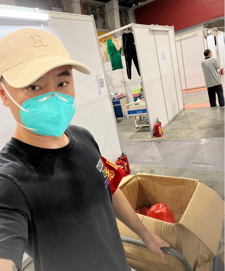 在琶洲方舱医院短暂的日子里,令林昊旻印象最深刻的是舱内的志愿者队伍。“志愿者都是由‘舱友’组成,他们在身体状况好转情况下,自愿报名参加各种志愿活动。”在别人还在梦乡时,志愿者已经早起派发早餐;醒来时,桌面上已经摆上热乎的早餐。50多名的志愿者队伍协助医护人员为600余名患者服务,负责一日三餐配送、组织人员参加核酸检测、协助工作人员搬运物资等。