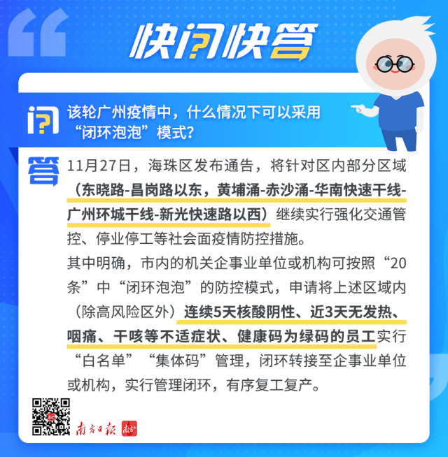 什么是“闭环泡泡”防控模式?其实,这并非广州的首创,而是来自国务院联防联控机制发布的进一步优化防控工作的二十条措施。在广州本轮疫情中,企业如何申请实施“闭环泡泡”?请看快问快答。