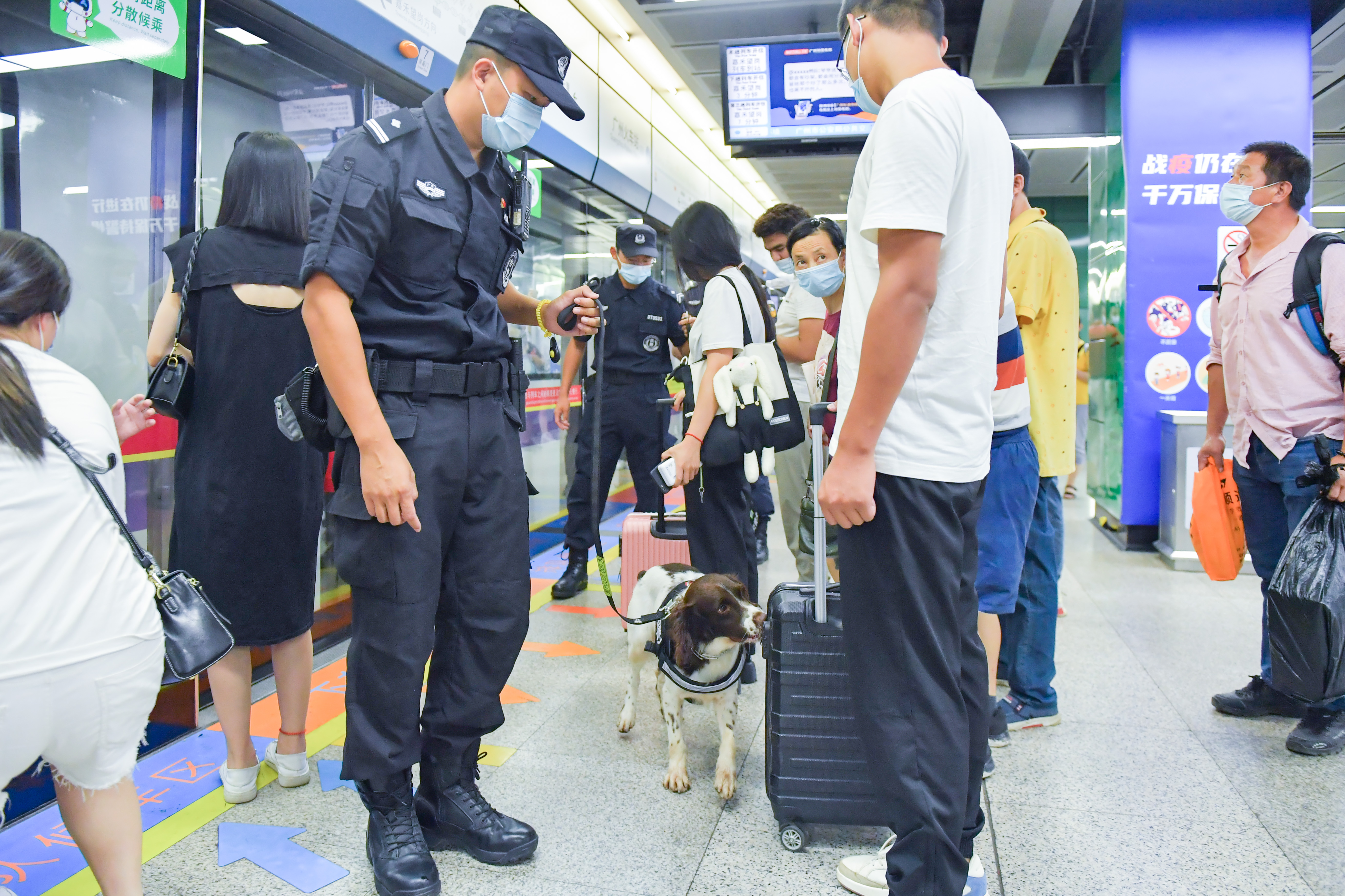 近日,广州地铁上一名男孩被硫酸滑倒灼伤事件引发市民关注。哪些物品不能带进地铁站?乘客具有哪些行为将由公交警方介入?记者从广州警方获悉,“人过安检门、物过安检机”,目前全市288座地铁站点全面实行“进站安检、民警盘查、警犬查危、智慧识别”四层过滤机制。针对市民关注的热点问题,警方进行答疑解惑。