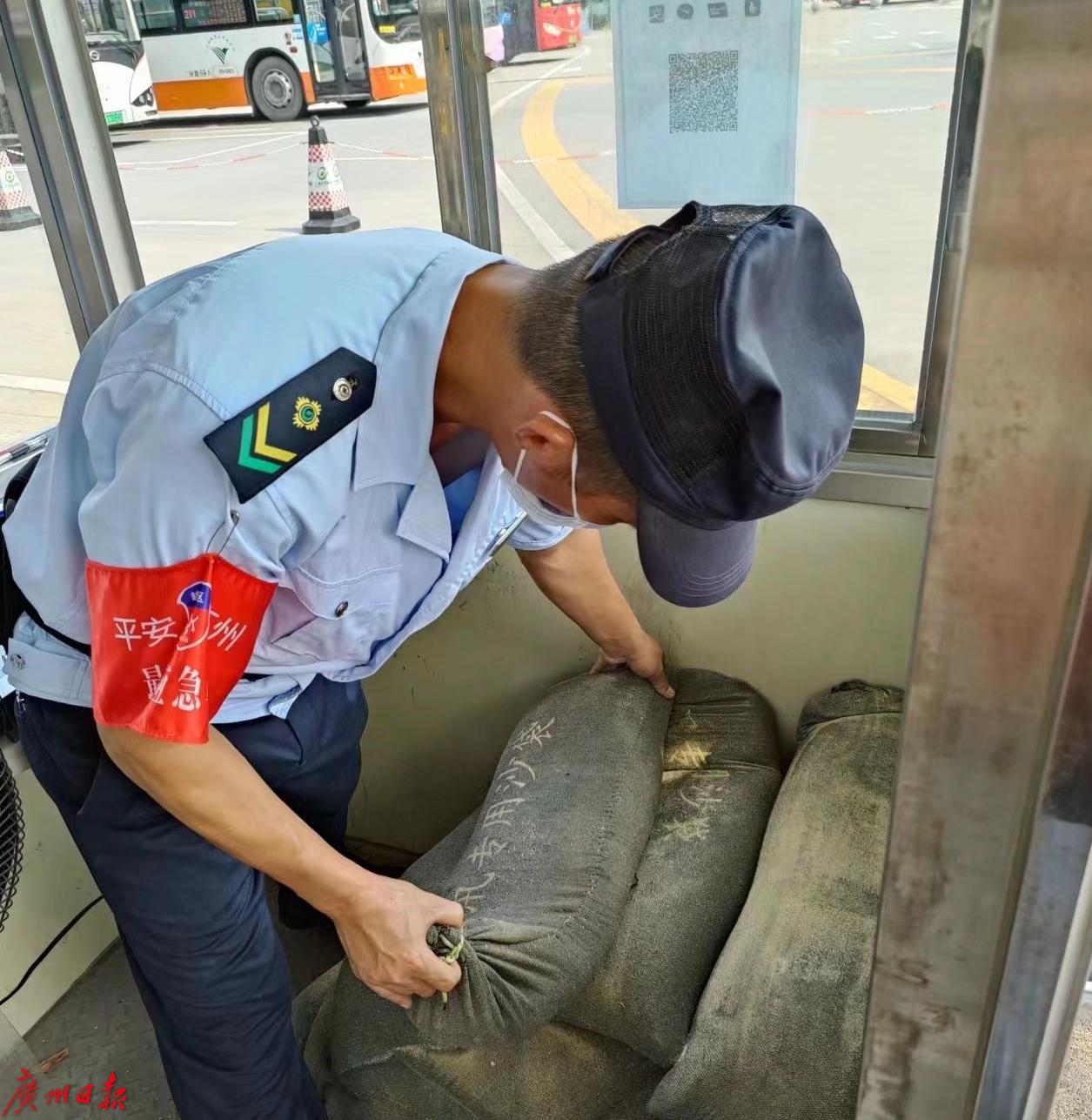 在广州火车站(草暖公园)公交站,记者看到,现场工作人员正仔细检查公交站场各处安全设施,电闸开关、户外标识牌、防风防汛沙袋、应急物资充电桩场地等设施设备一个不落地进行安全确认。