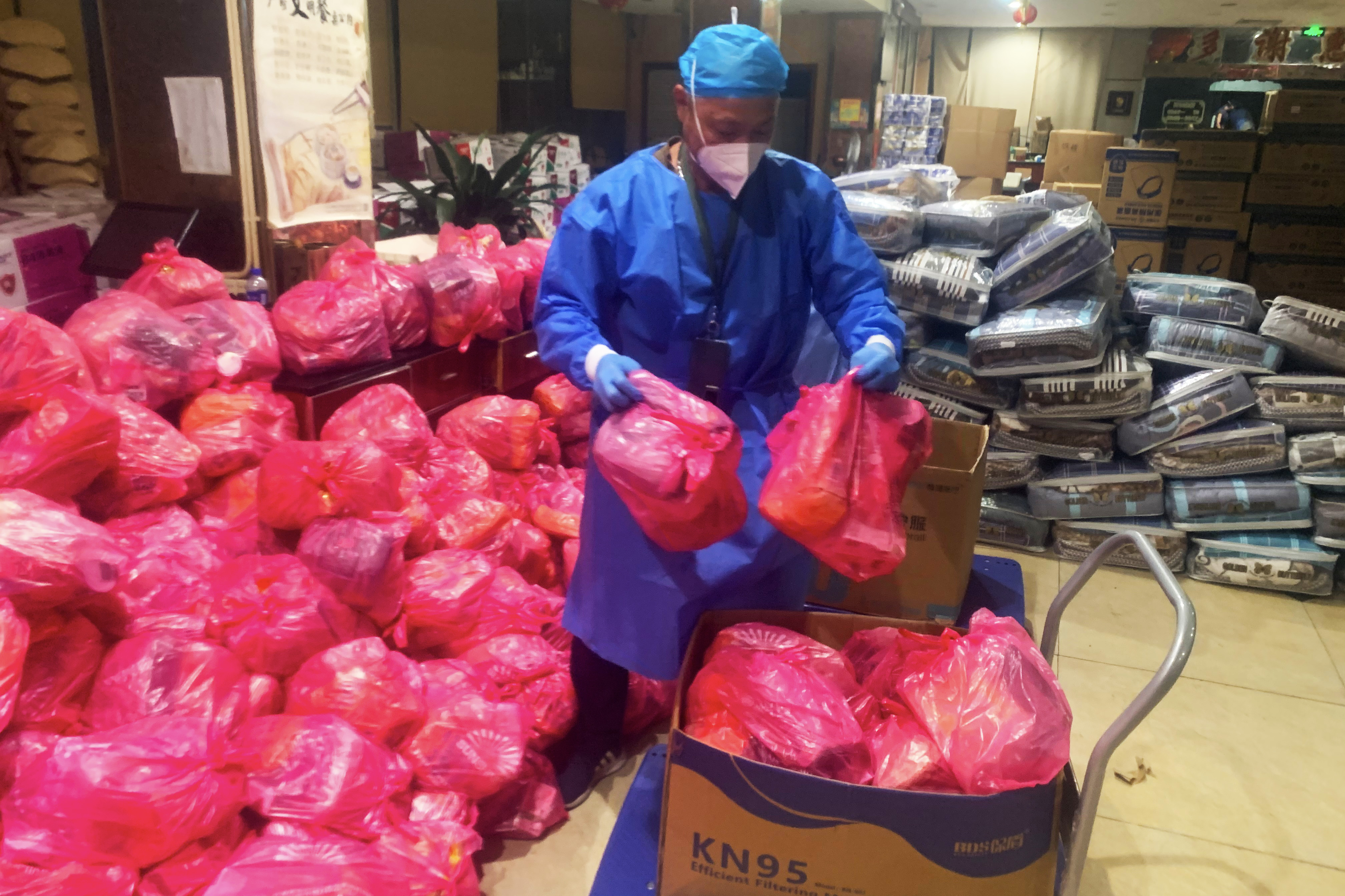 作为片区外来物资汇总及分发的总据点,物资分拣服务点承接了片区7个网格、8万名居民所有外卖、生鲜物资、快递的消杀和分拣工作,每天处理物资达上万份。