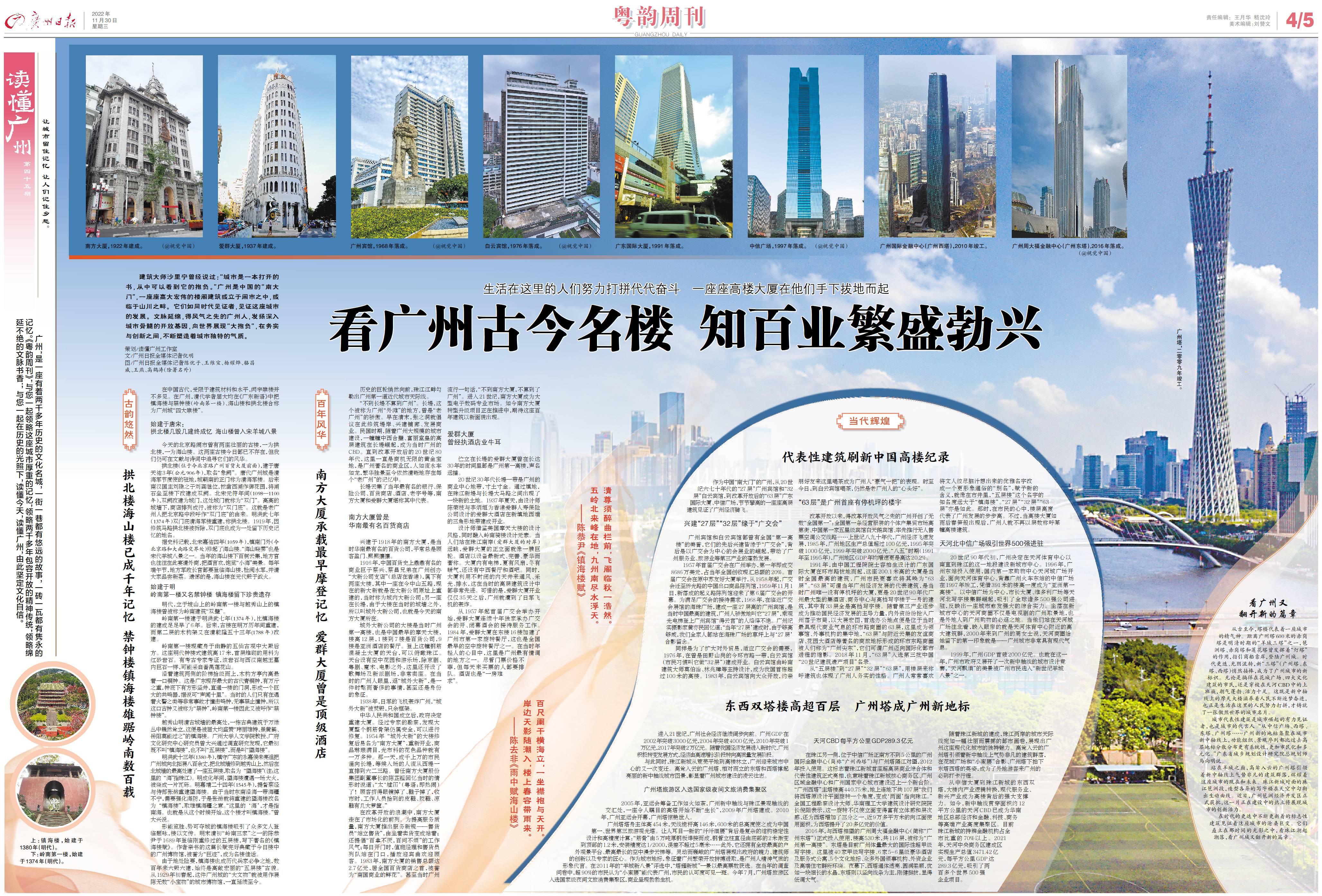 作为中国“南大门”的广州,从20世纪六七十年代的“27层”广州宾馆和“32层”白云宾馆,到改革开放后的“63层”广东国际大厦、中信广场,节节攀高的一座座高层建筑见证了广州经济腾飞。