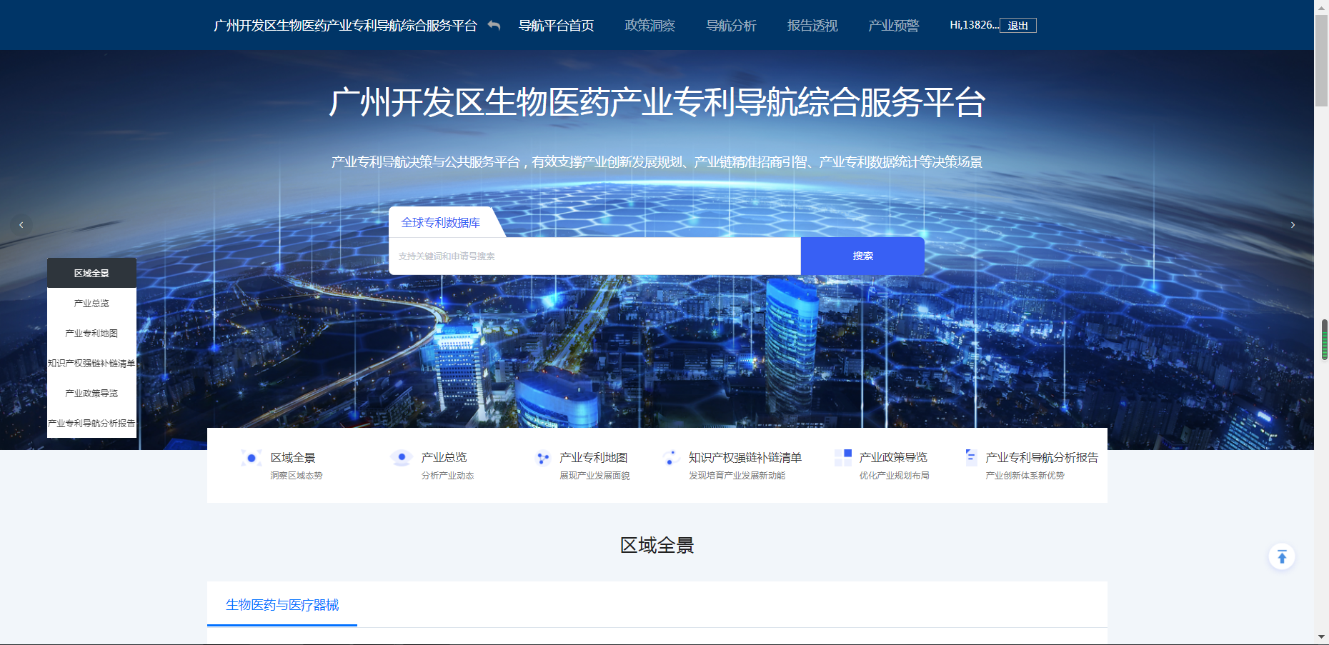 图为广州开发区生物医药产业专利导航综合服务平台