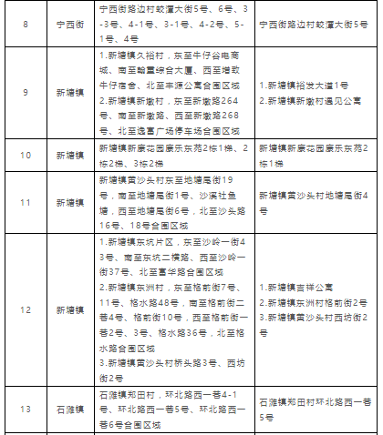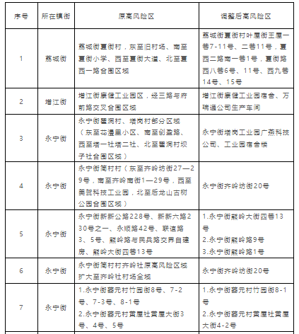 根据当前防控工作进展,增城区新型冠状病毒肺炎疫情防控指挥部研究决定,自2022年11月30日22时起对下列高风险区域进行调整: