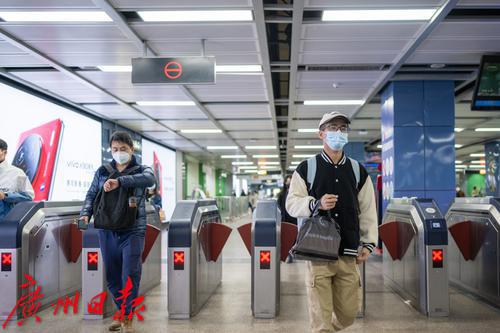 上午8点20分,记者来到海珠区客村地铁站,该站进出站口均已对外开放,记者见到每个站口外都摆放“凭场所绿码方可通行凭证方可进站”的提醒。市民扫码进站,有序乘车。