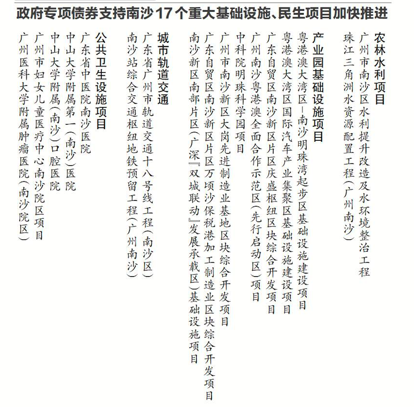 政府专项债券支持南沙17个重大基础设施、民生项目加快推进