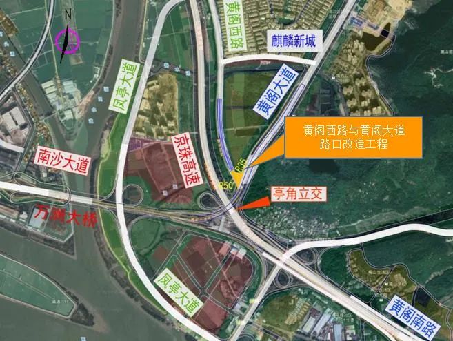 该工程改造后将有效改善黄阁镇亭角立交北侧相关区域往京珠高速和南沙港快速的通行条件,减轻黄阁立交、东涌立交的交通压力,提升车辆通行效率。