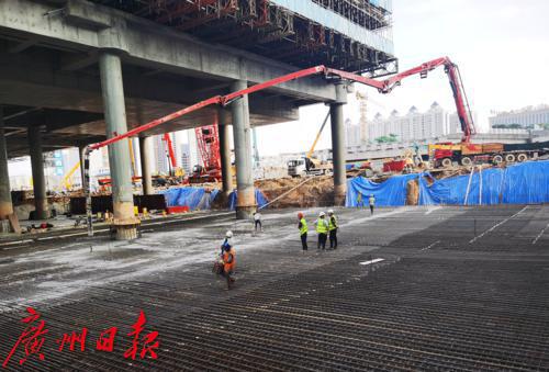 11月30日,由广州地铁集团负责建设管理、中铁二十五局承建的新塘站综合交通枢纽一体化工程(以下简称“新塘站综合交通枢纽”)盖挖法车站主体结构盖板全部浇筑完成,为既有广深铁路线路倒边运行提供了先行条件,标志着该项目建设迈进新阶段。新塘站综合交通枢纽位于广州市增城区新塘镇,项目施工包括枢纽配套场站工程、地铁土建预留工程(即盖挖法车站)、地下城市通廊等,其中盖挖法车站位于广汕铁路新塘站站房正下方,长254米,宽47.3米,深23.5米,基坑占地面积约27619平方米。
