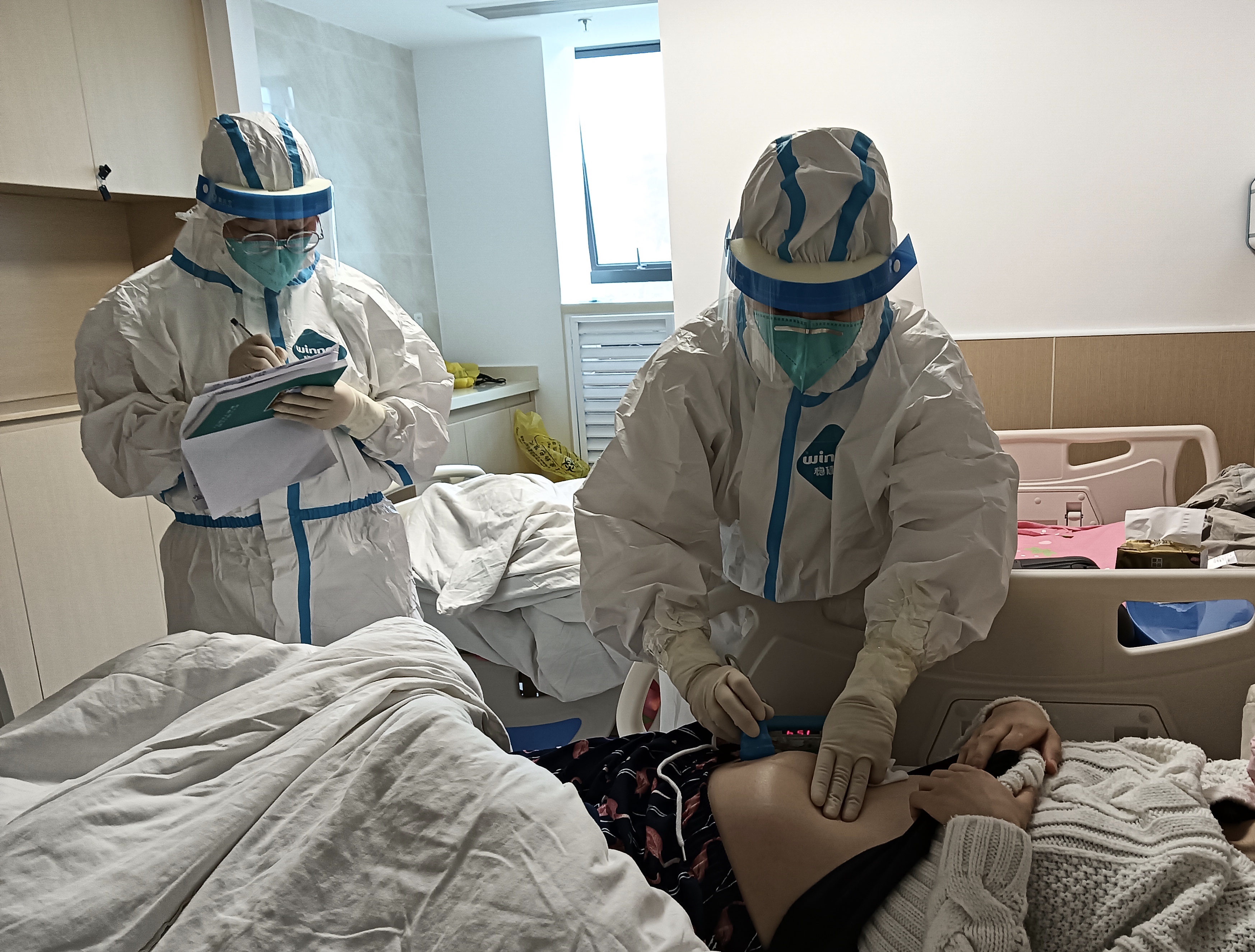 “来,平躺,我们给你做个产检”,第一批新冠肺炎孕产妇轻症感染者入院后,广医三院产科主任医师余琳马上带队为孕产妇们做产检。身穿“大白”的产科医护人员为孕产妇仔细进行胎监、测量宫高腹围、听胎心。觉察到有孕妈妈因感染病毒而内心焦虑,余琳耐心安慰:“别担心,宝宝都很好,你的身体现在也没有异常。要放宽心,有任何不适,随时同我们说。”