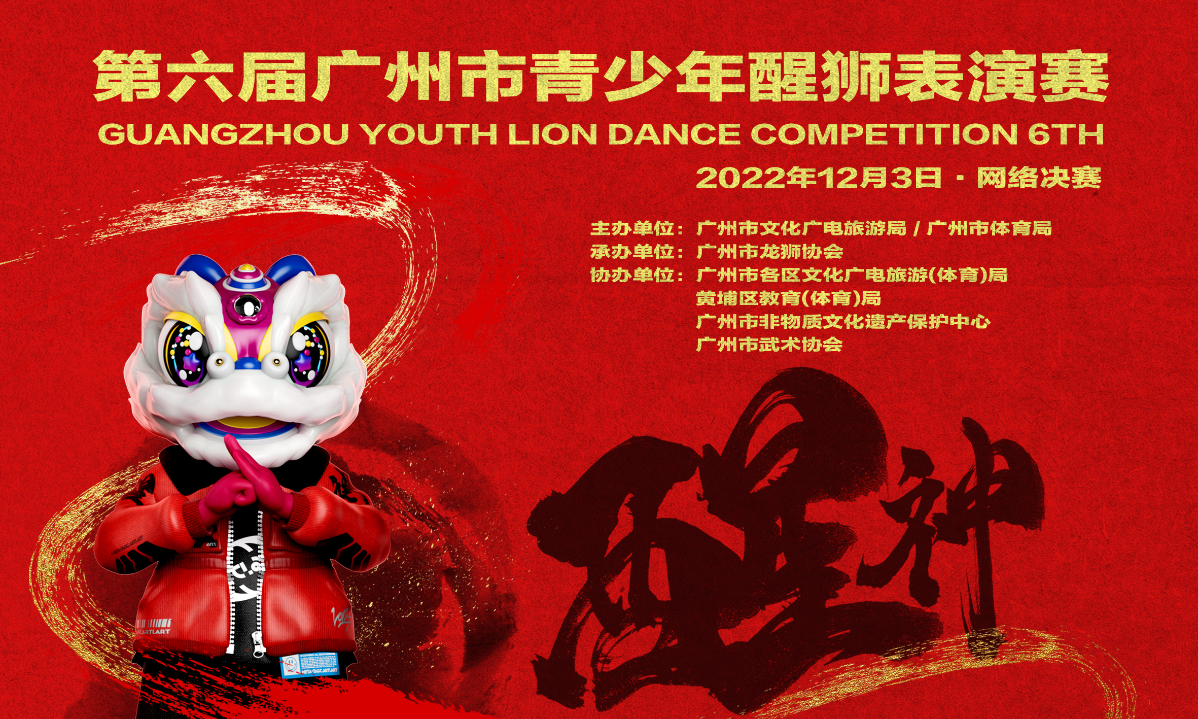本次大赛由广州市文化广电旅游局、广州市体育局联合主办,广州市龙狮协会执行承办。全市11区醒狮传承人齐接力,携手青少年醒狮精英们一展朝气蓬勃、劲健昂扬的气象。