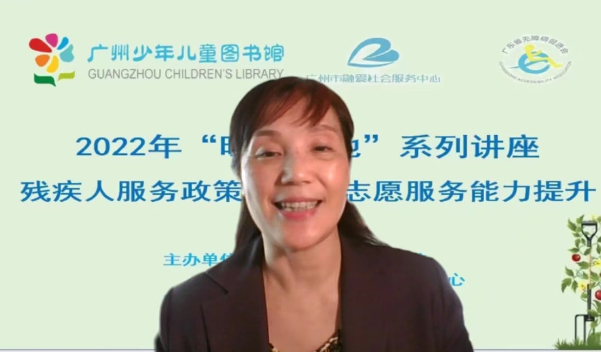 12月3日上午,广州少年儿童图书馆暖爱园地系列讲座第十二讲之残疾人服务政策法规与志愿能力提升于顺利举行。来自各校青年志愿者和残疾儿童家属共60余人在腾讯会议线上聆听了讲座,广州少年儿童图书馆吴翠红副馆长参加了本次培训,并在致辞时向广大特殊儿童及家属送上祝福。