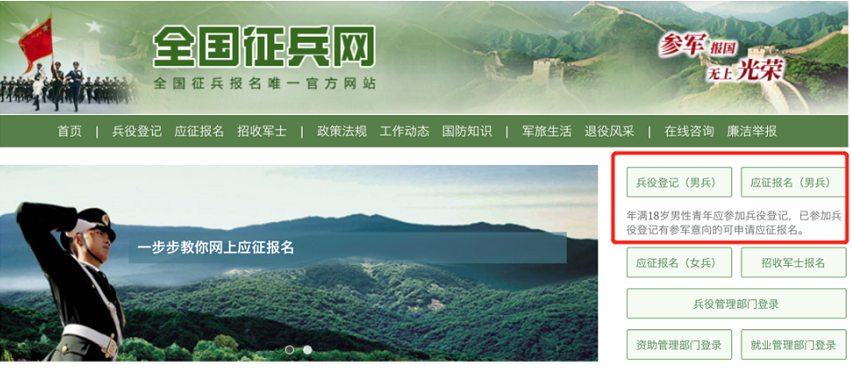 ★需要提醒广大适龄男青年的是,男兵报名前须完成兵役登记。
