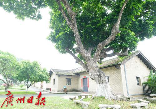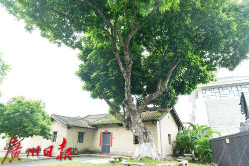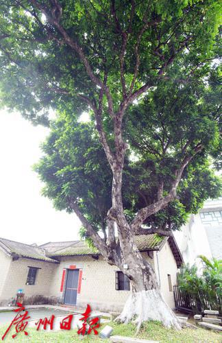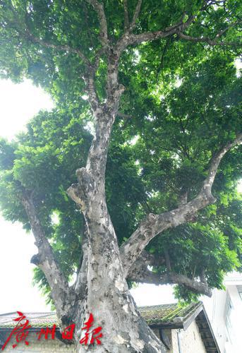 广州市花都区秀全街洪秀全故居内,估测树龄143年的人面子古树,树木奇特,树干上长着“白斑”。